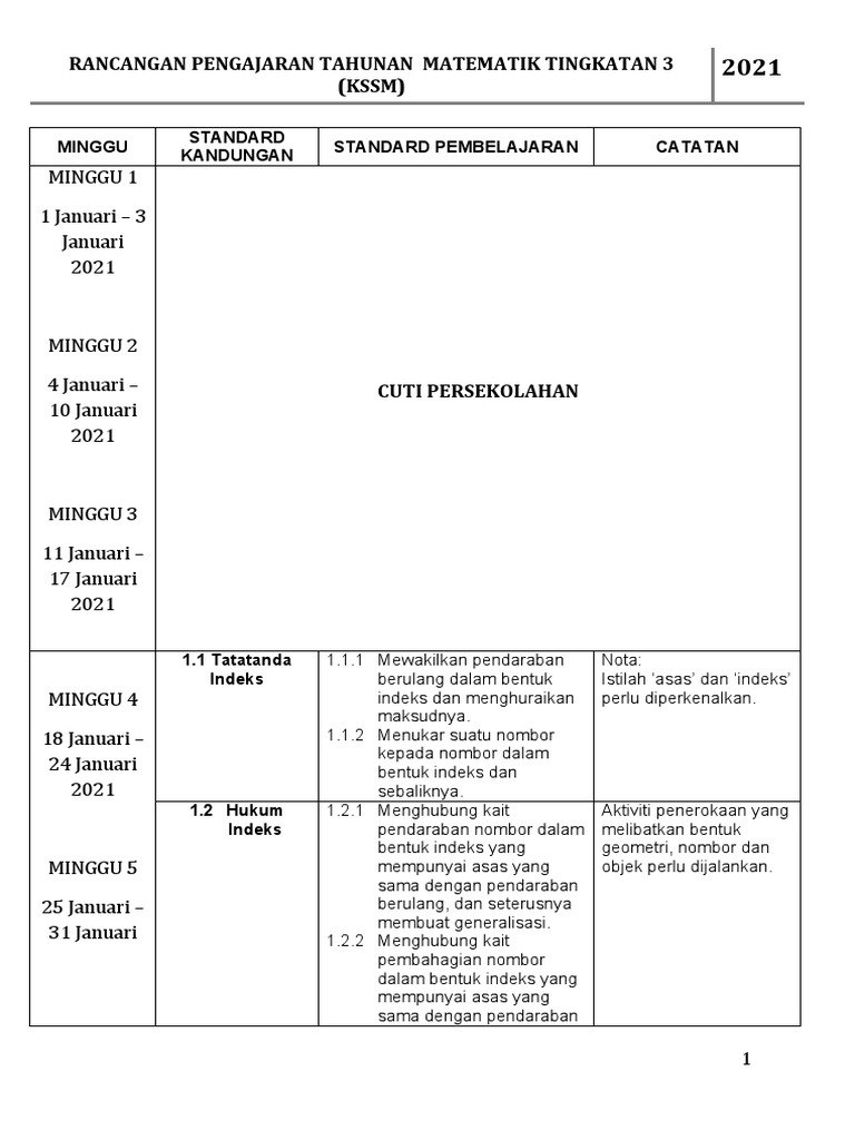 Sukatan pelajaran matematik tingkatan 2bab 1. Nota-nota menengah rendah PMR chegu. Organisasi Kandungan merangkumi Penggunaan Bahasa Kemahiran Bahasa Aspek Bahasa Hasil Pembelajaran dan Pengisian Kurikulum yang dijelaskan dalam dokumen ini.
