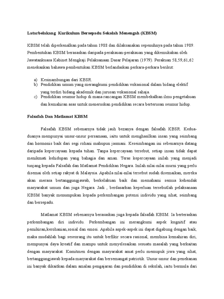 Latarbelakang Kurikulum Bersepadu Sekolah Menengah Pdf