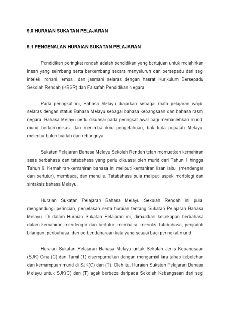 Pendidikan Jasmani dan Kesihatan Tingkatan 1 5. Rabu 1 Jun 2011. Huraian Sukatan Pelajaran Bahasa Melayu Sekolah Menengah Tingkatan Empat xi kemahiran bahasa untuk mencapai Hasil Pembelajaran Khusus dan Hasil Pembelajaran Utama.