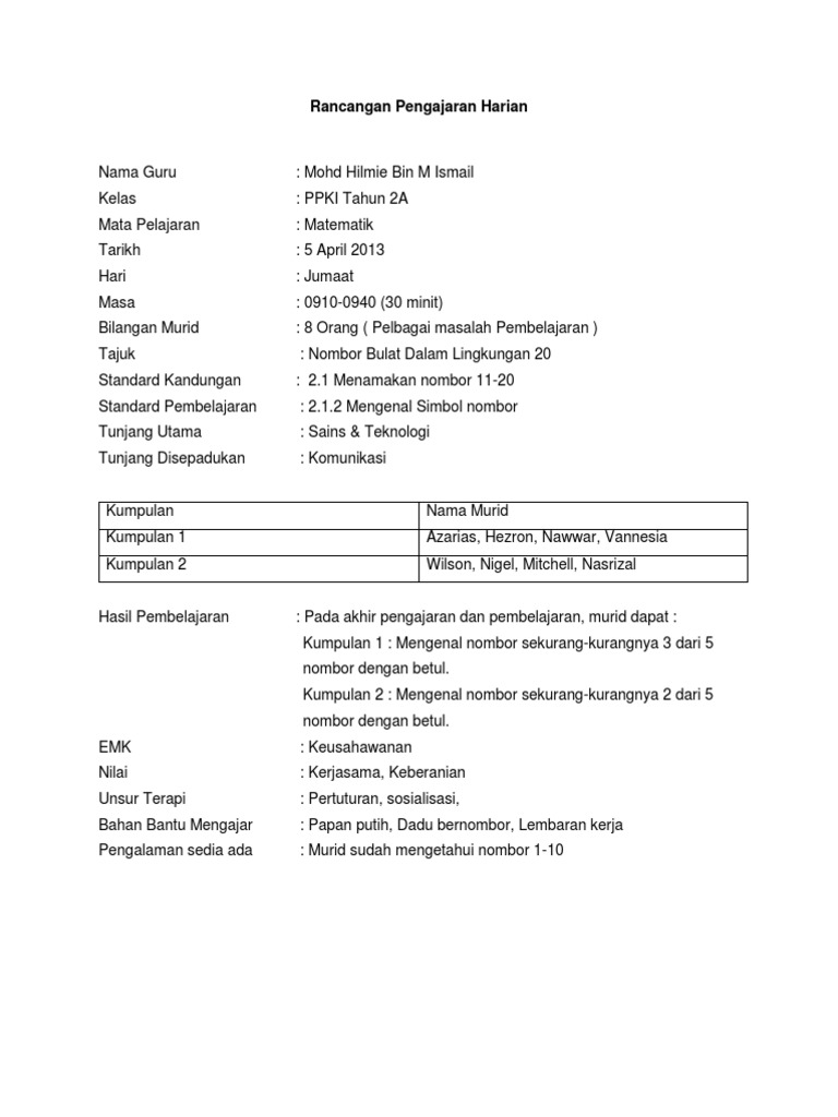 Rph Matematik Kssr Tahun 2 Pendidikan Khas Pdf